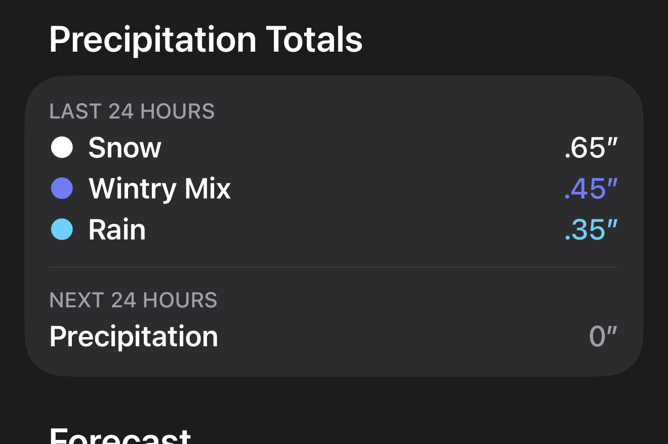 Snow - snow Rain - rain Sleet - sleet Winters mix - any combination above