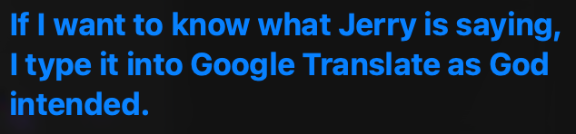 Wenn ich wissen will, was Jerry sagt, gebe ich es in Google Translate ein, so wie es Gott vorgesehen hat.